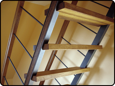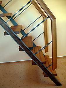 Elegante Treppe auf kleinem Raum Der Aufstieg zum ausgebauten Giebelzimmerchen durfte nicht viel Platz einnehmen, denn der Raum war klein. Die Stiege ist eine Konstruktion aus Stahl und Teakholz. Elegant sind die Stufen, die in sehr schmale Stahlprofile eingebunden sind. ![]() ![]() ![]() |