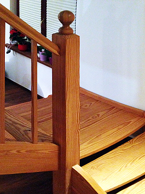 Klassisch empor Dem Wunsch nach individueller Raumnutzung folgte diese Gestaltung der Treppe mit einem zweiseitigen Zugangspodest. Weiche Schwüngen in den Stufen und Wangen harmonieren mit den markanten Zeichnungen der warmtönigen amerikanischen Pinie. ![]() ![]() ![]() |